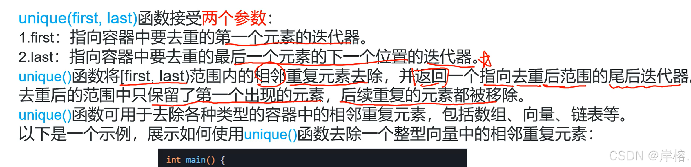 swap() reverse() unique()//去除相邻重复元素。事实上是移动到数组的后面去。