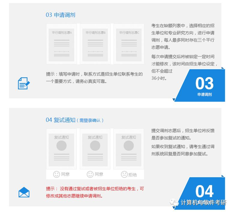 提交调剂志愿后,招生单位将反馈是否参加复试的通知。如果收到复试通知,请考生回复是否同意参加复试。