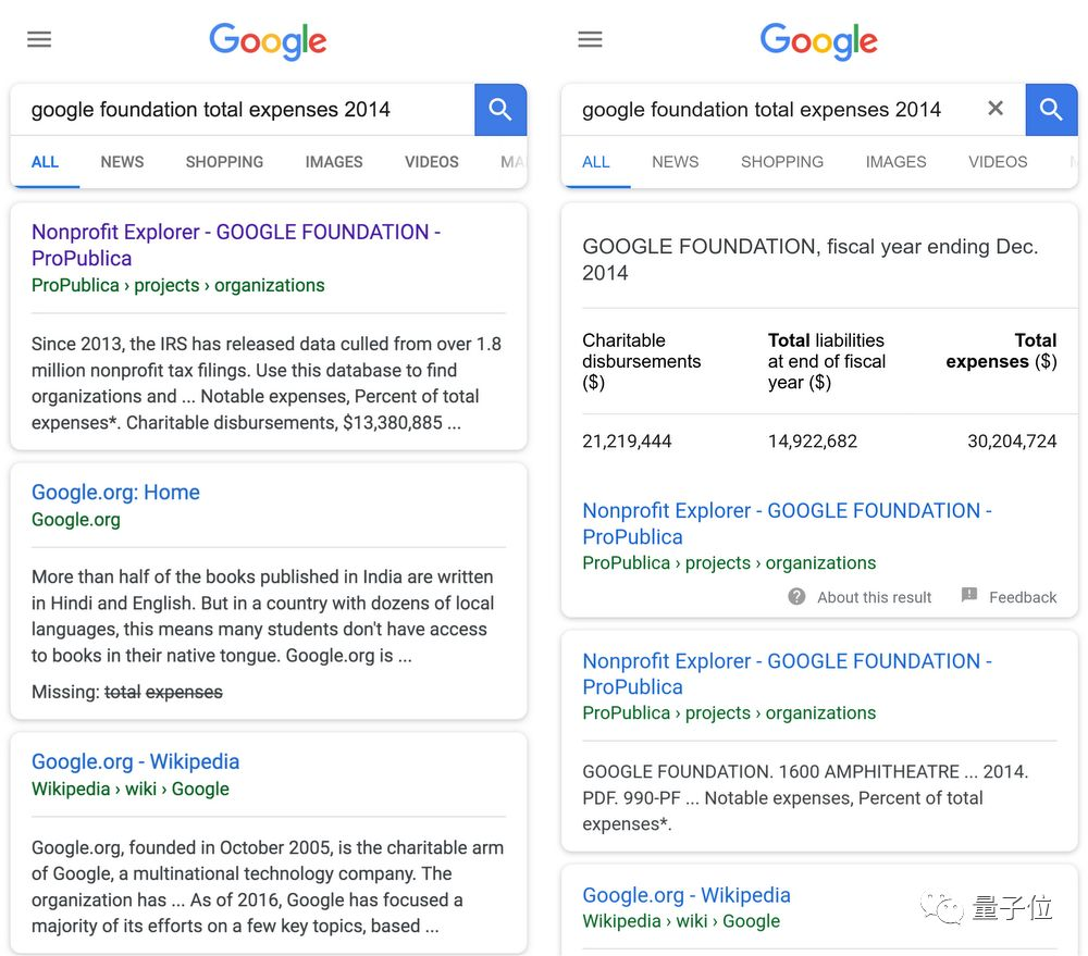 就像这样,已经可以搜索出谷歌基金会 (Google Foundation) 2014的总开支。