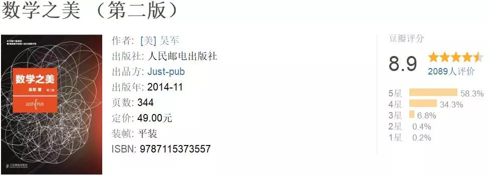 《数学之美》上市后深受广大读者欢迎,并荣获国家图书馆第八届文津图书奖。读者说,读了《数学之美》,才发现大学时学的数学知识,比如马尔科夫链、矩阵计算,甚至余弦函数原来都如此亲切,并且栩栩如生,才发现自然语言和信息处理这么有趣。