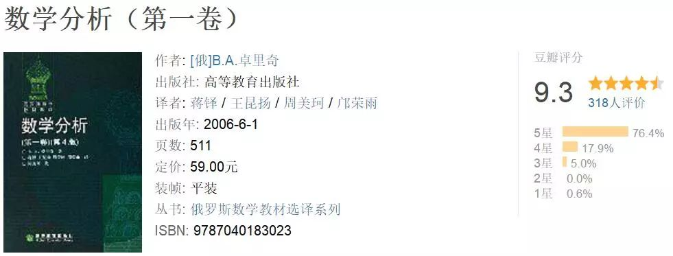 此外,还有几本数学相关的书籍上榜,俄罗斯莫斯科大学教授B.A.卓里奇撰写的《数学分析》上榜3次,在清华大学、复旦大学和山东大学的图书排行中均榜上有名。据统计,清华学子去年共借阅《数学分析》一书多达81次。
