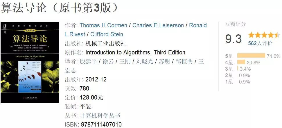 第二大热门的书籍是由Thomas H.Cormen 、Charles E.Leiserson 、Ronald L.Rivest 、Clifford Stein 共同撰写的《算法导论》
