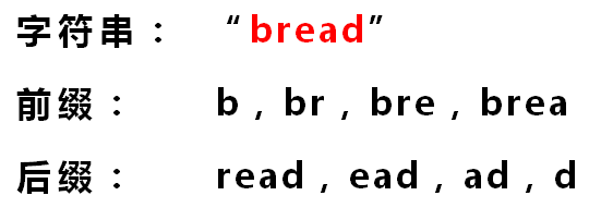 下面介绍《部分匹配表》是如何产生的。首先,要了解两个概念:"前缀"和"后缀"。 "前缀"指除了最后一个字符以外,一个字符串的全部头部组合;"后缀"指除了第一个字符以外,一个字符串的全部尾部组合。