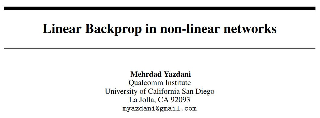 这篇 Linear Backprop 接受为 NIPS/NeurIPS 2018 关于紧凑神经网络的 Workshop 论文,该研讨会关注构建紧凑和高效的神经网络表征。具体而言,其主要会讨论剪枝、量化和低秩近似等神经网络压缩方法;神经网络表示和转换格式;及使用 DNN 压缩视频和媒体的方式。