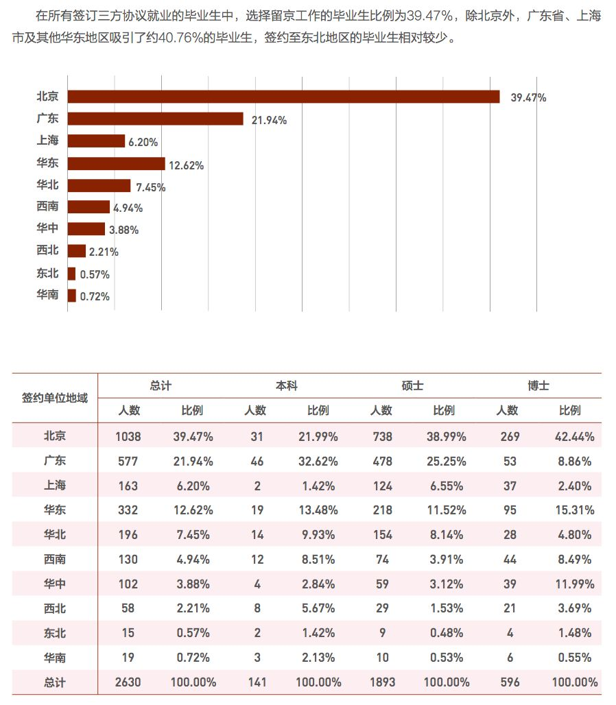 大多数毕业生流向东部发达地区