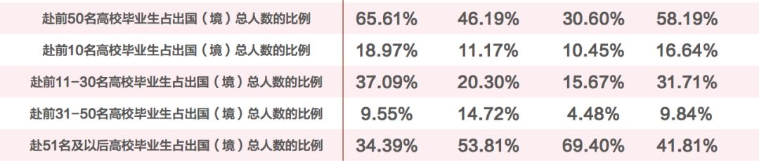 对于顶尖高校来说,相当一部分毕业生毕业后会选择出国(境)深造继续学习,其中本科生是出国(境)深造的主力军。不过从近几年统计数据来看,顶尖高校毕业生的出国(境)深造率呈下降趋势。