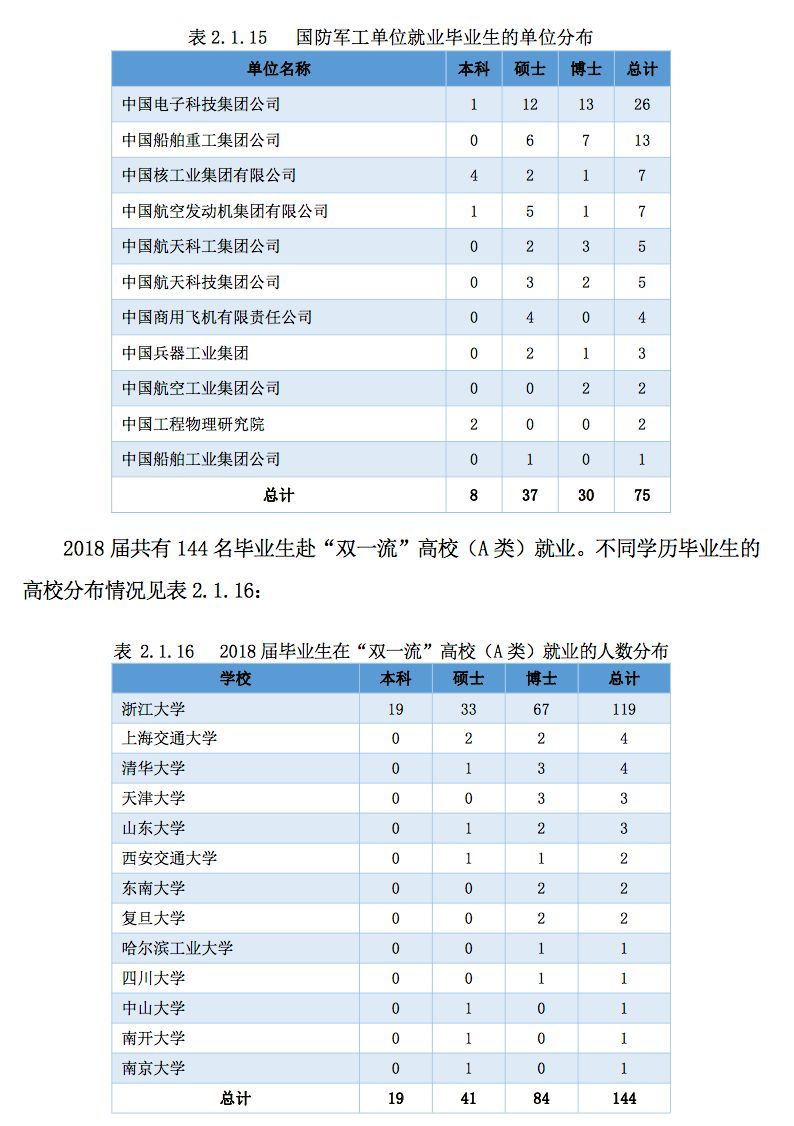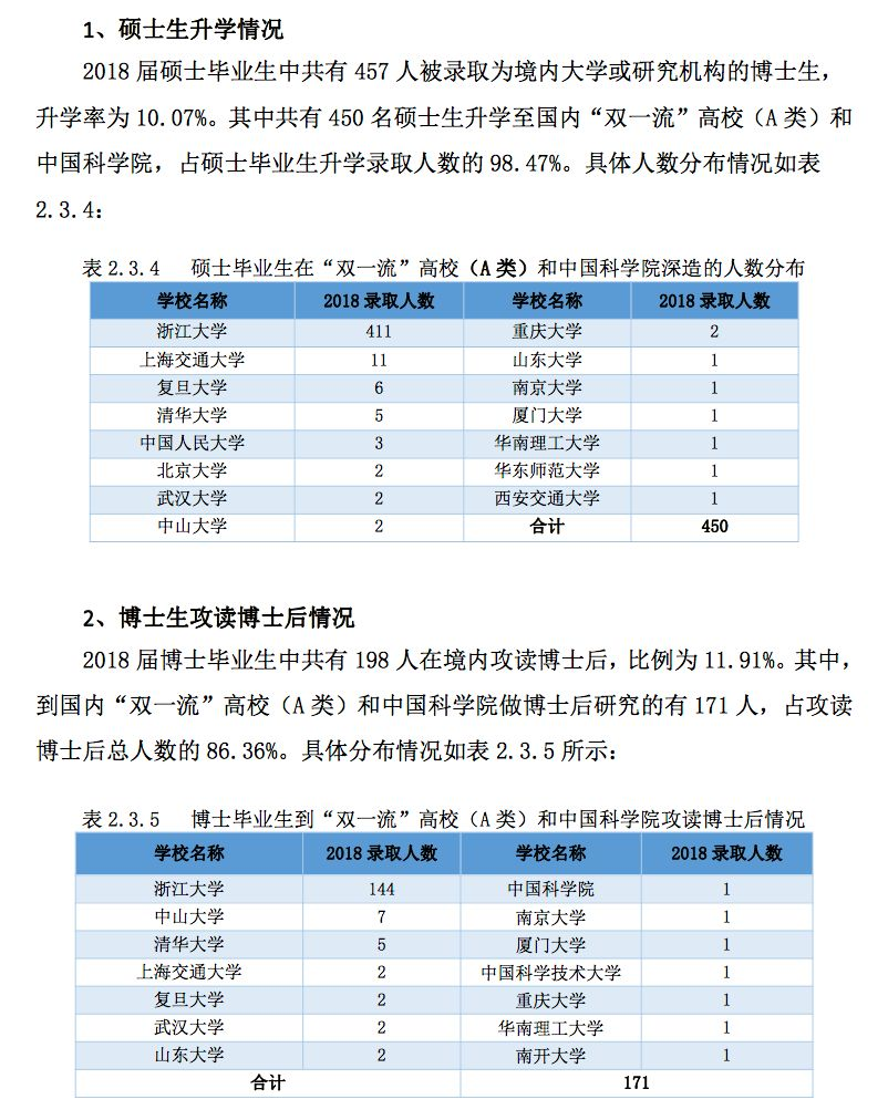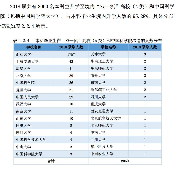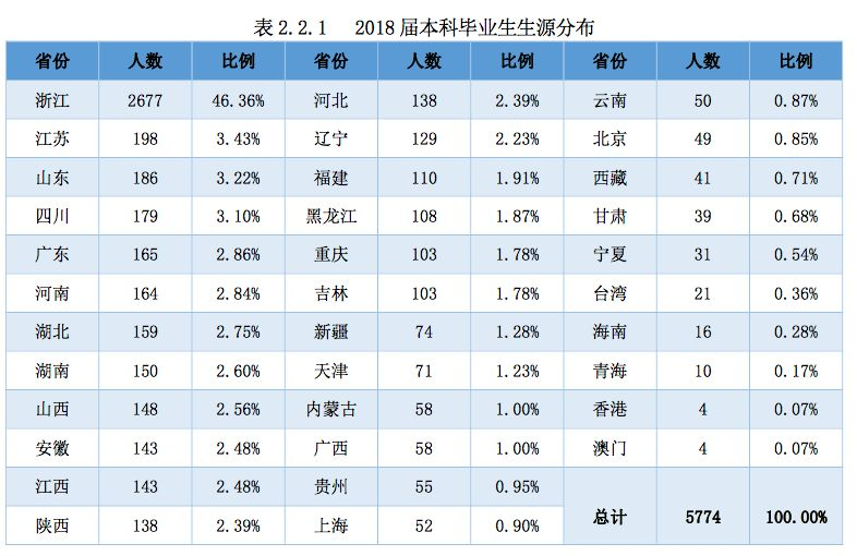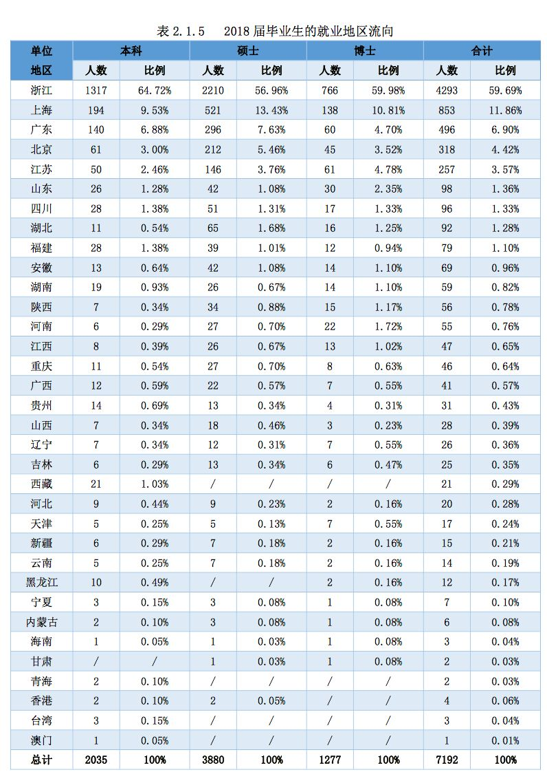 浙江大学2018年届毕业生就业情况