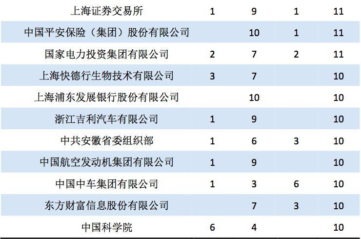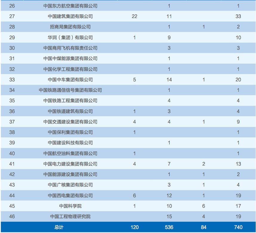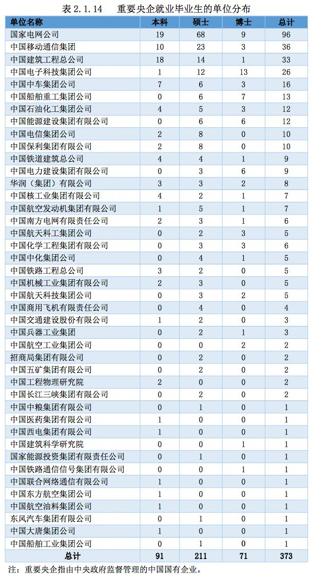 2018 届毕业生中共有 373 位签约重要央企,单位分布情况参见表 2.1.14: