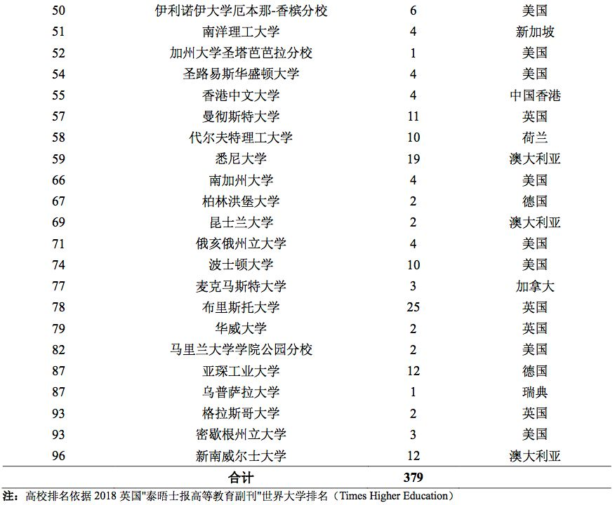 2018 届毕业生中出国(境)留学有 379 人就读于世界排名前 100 的高校,占出国(境)留 学总人数的 59.87%。