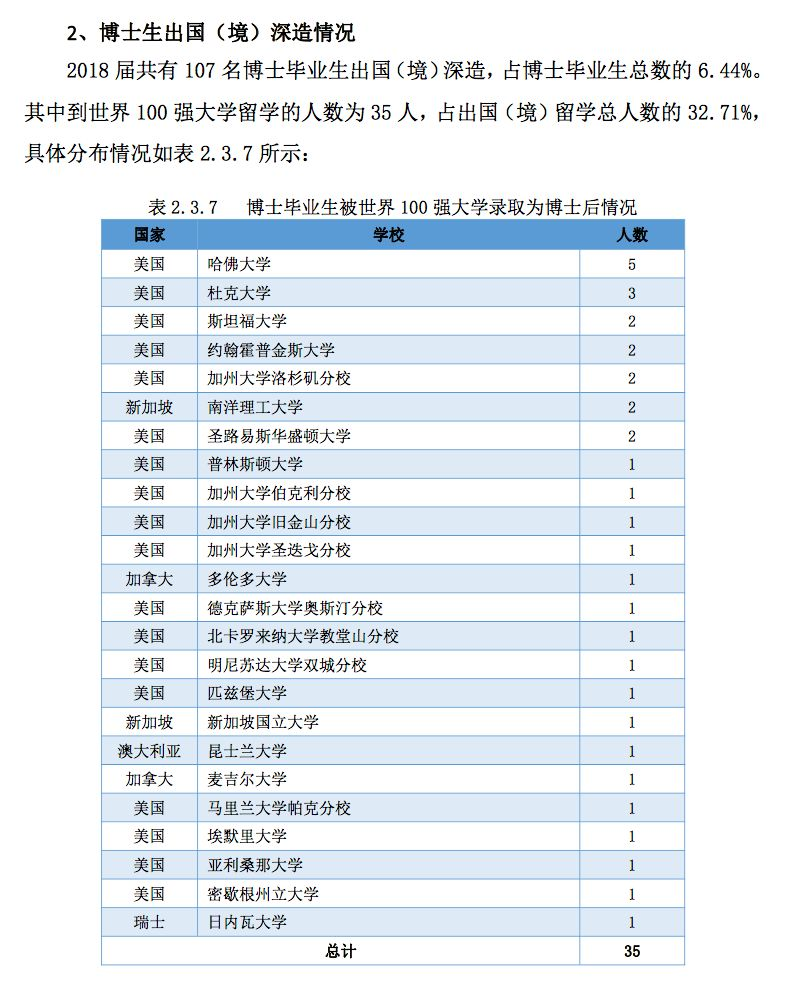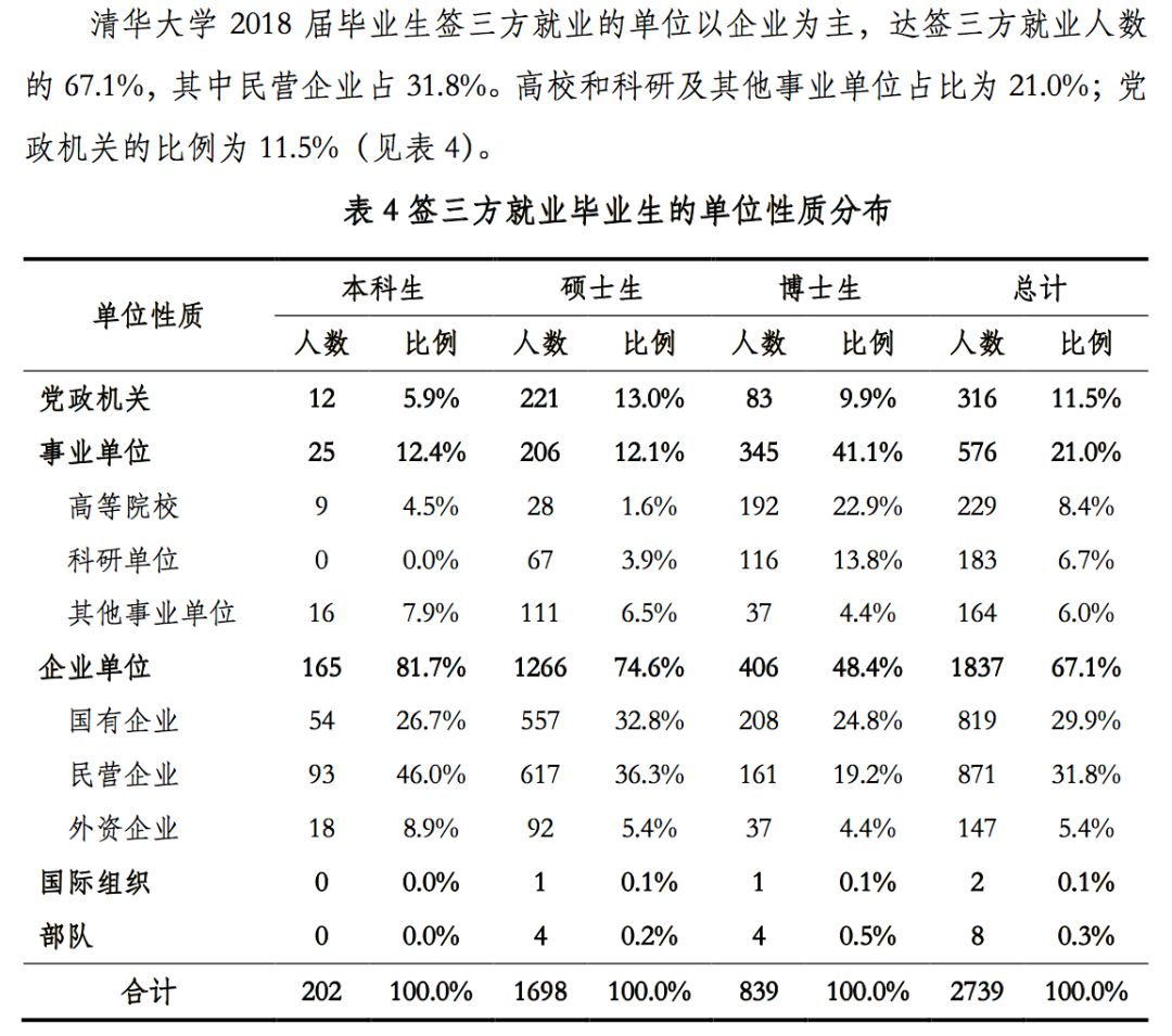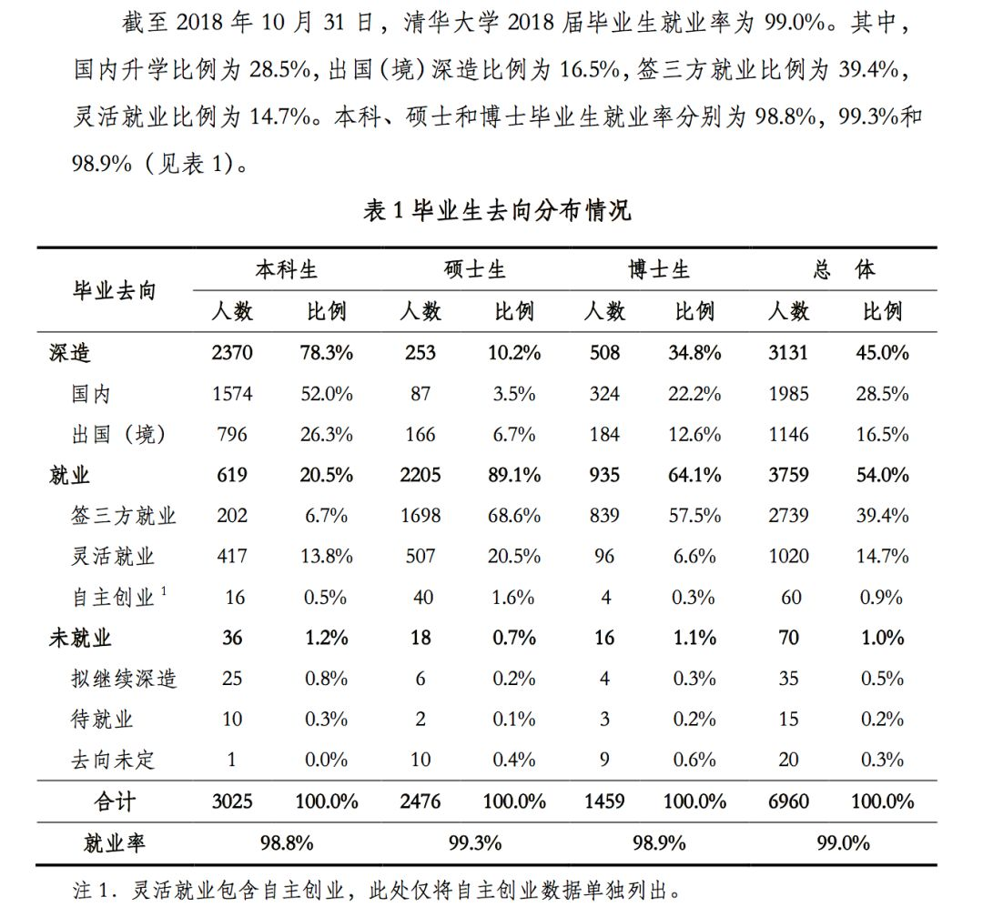 清华大学2018年届毕业生就业情况