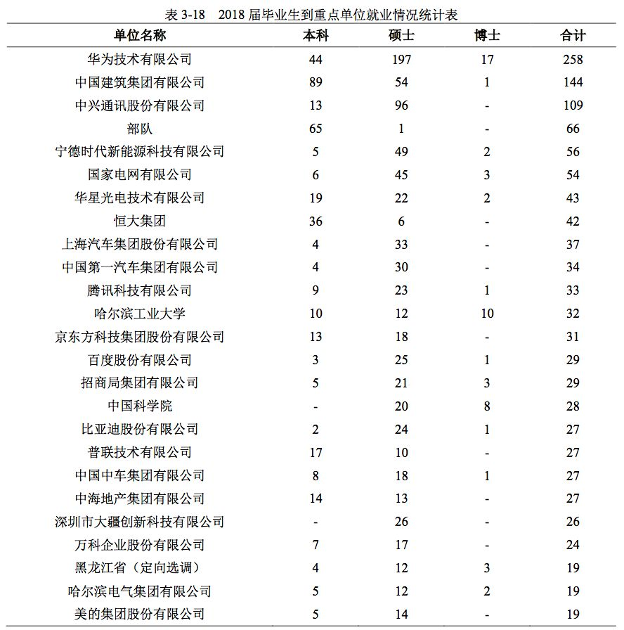 哈尔滨工业大学2018年届毕业生就业情况