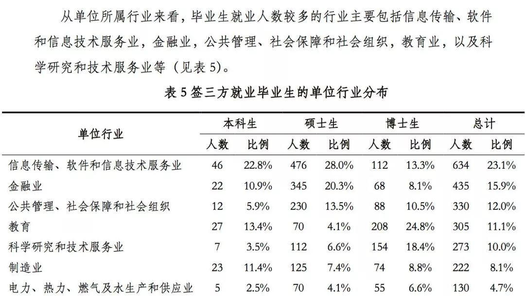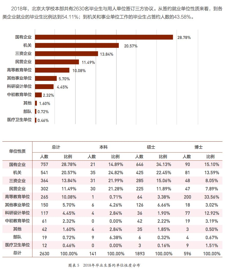 北京大学2018年届毕业生就业情况