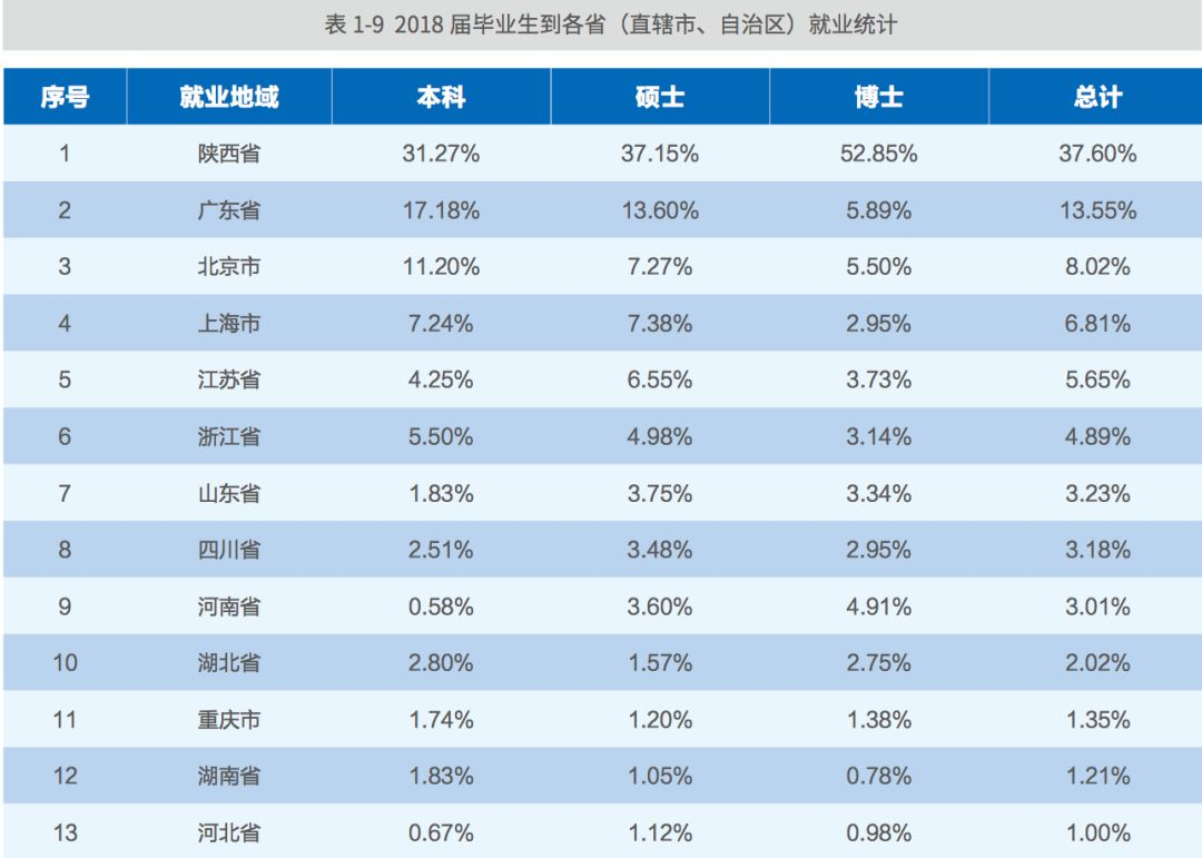 西安交通大学2018年届毕业生就业情况