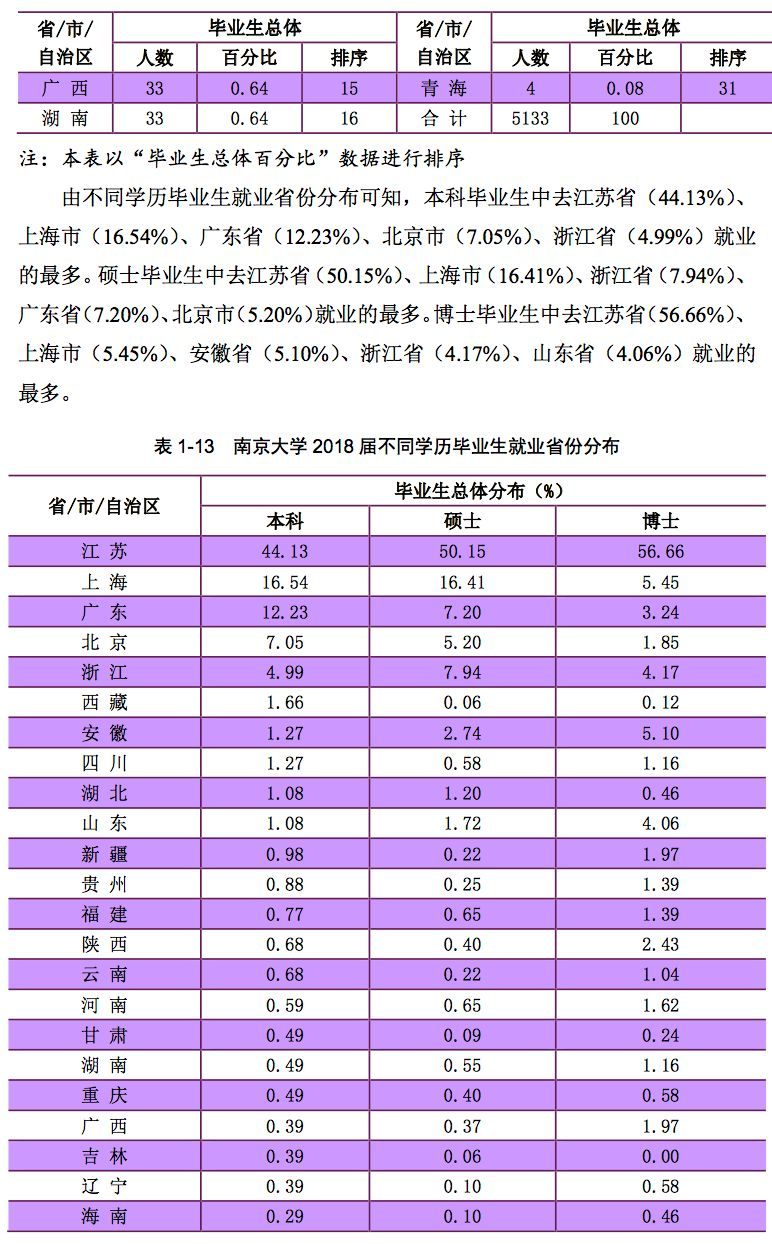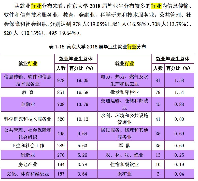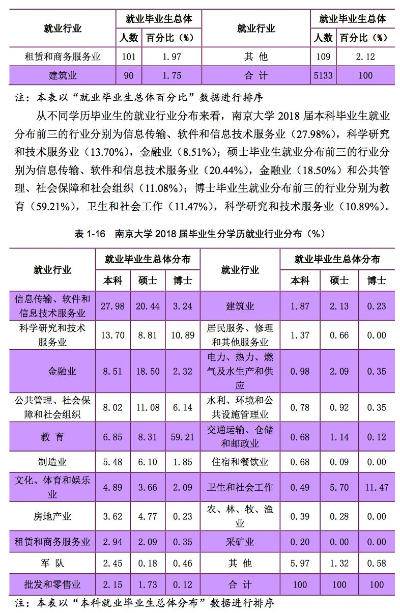 南京大学2018年届毕业生就业情况