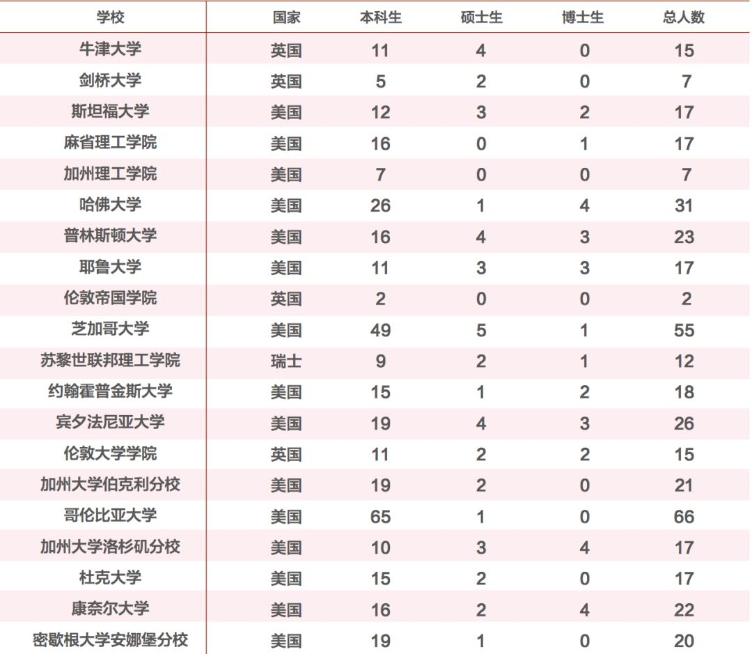 顶尖名校毕业生人数有所增加