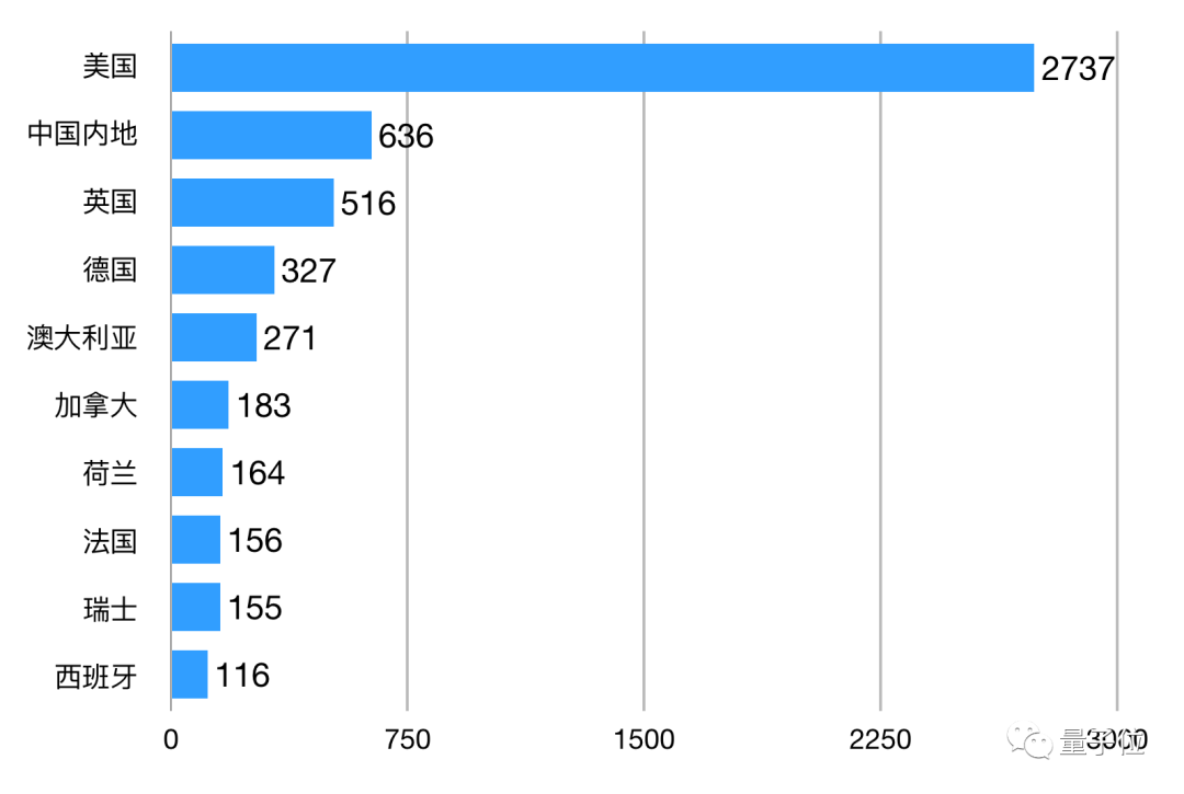 延续以往,美国仍然是高引学者最多的国家,2019年有2737人次,占列表中学者的44%。