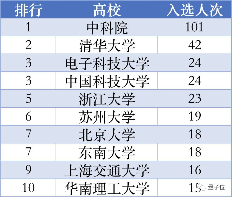排在清华之后,入选此名单人次最多的另外两所高校分别是电子科技大学和中国科学技术大学,各有24人次入选。