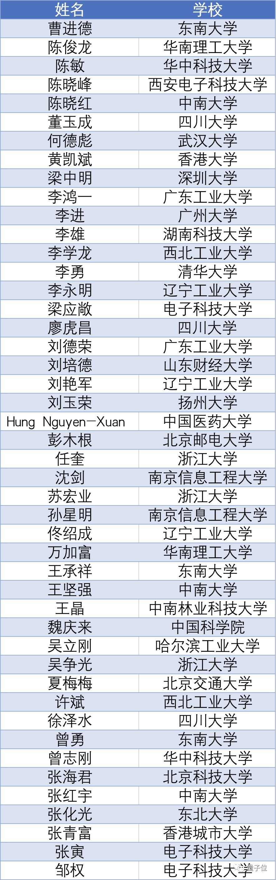 其中,东南大学、中南大学、四川大学、浙江大学、电子科技大学、辽宁工业大学各有3人入选。