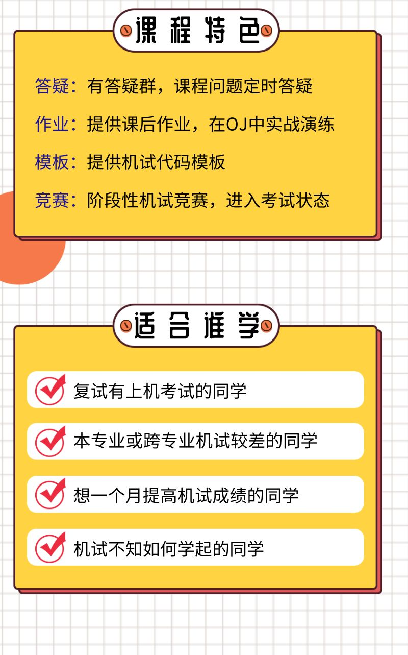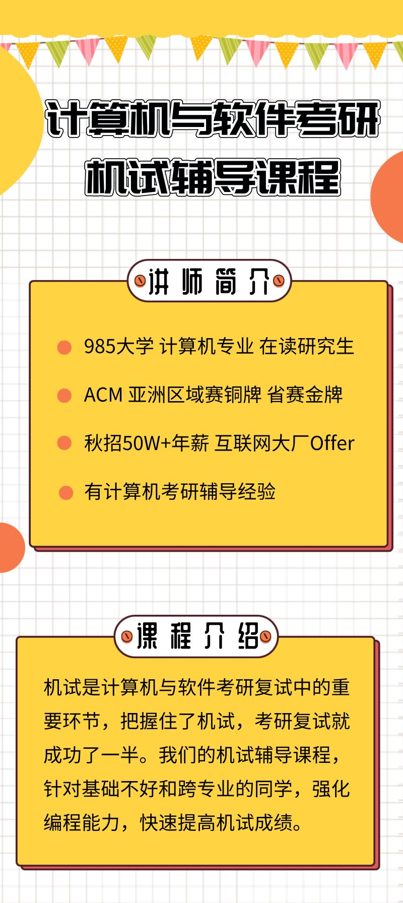 因此,为了让同学们在复试中取得更高的分数,我们推出了机试辅导课程: