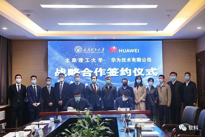 4月7日下午,太原理工大学与华为技术有限公司在明向校区行政楼二层会议室签订战略合作协议,华为中国区副总裁白利民,华为山西省总经理陈林,校长黄庆学、副校长梁卫国出席签约仪式。