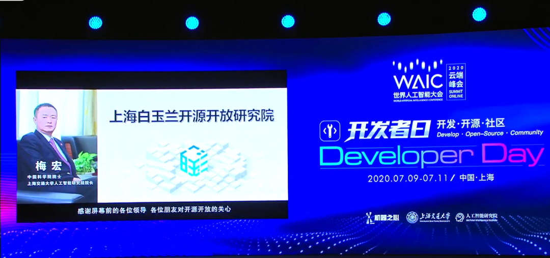 7月11日下午,在2020世界人工智能大会云端峰会中,上海白玉兰开源开放研究院揭牌。该研究院由上海交通大学人工智能研究院牵头,以上海市市花白玉兰为名,秉承其开路先锋,奋发向上的精神,积极推进中国的开源开放使用。