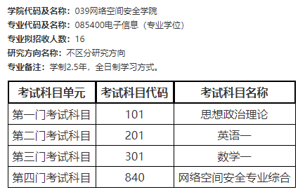 网络空间安全学院 网络空间安全专硕 推免 10人 剩余 6人
