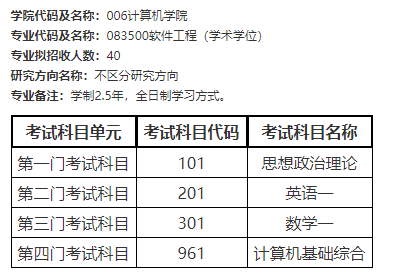 软件学院 软件工程学硕 推免 14人 剩余 6人