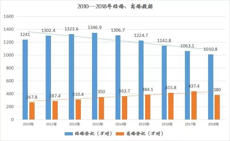 也就是说,每10对新人结婚,就有将近4对夫妇离婚!