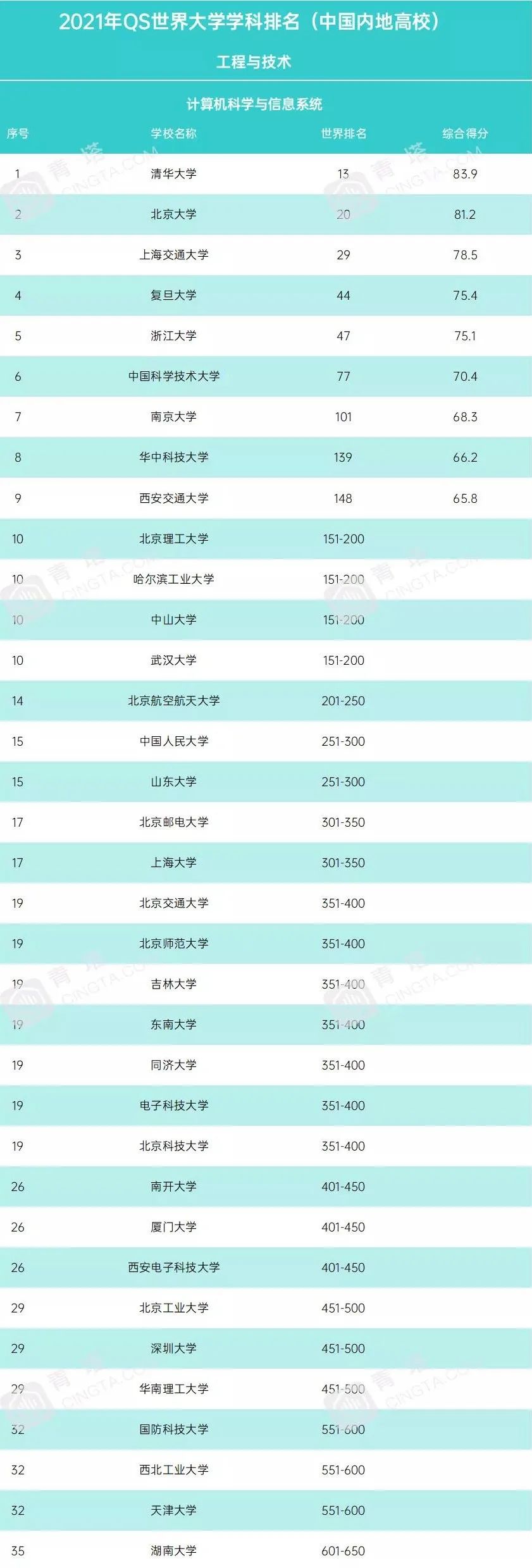 在2021 QS世界大学学科排名中,中国大陆大学排名再创历史新高。