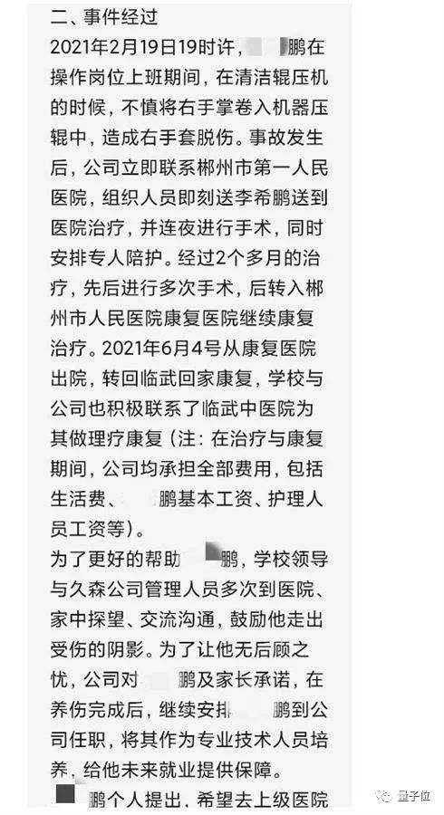 后续治疗中,工厂和校方未再出医疗费,甚至学校让学生自行和工厂协商。