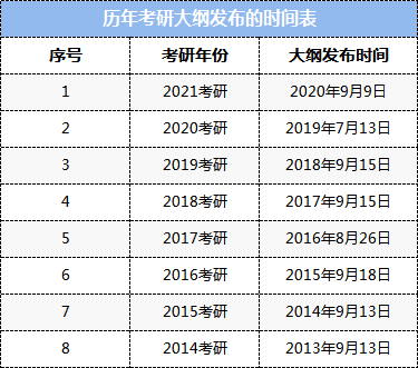 给大家整理了近8年来的新大纲发布时间,注意查看: