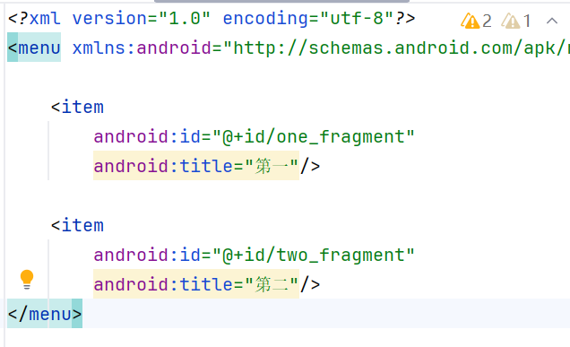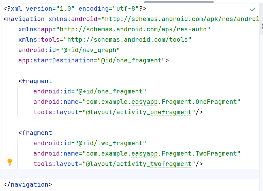 这里的 android:id 必须和 nav_graph.xml 中的 fragment id 一致,否则 Navigation 无法自动匹配。