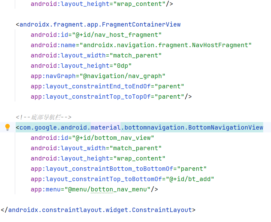 四、在Activity布局中添加BottomNavigationView