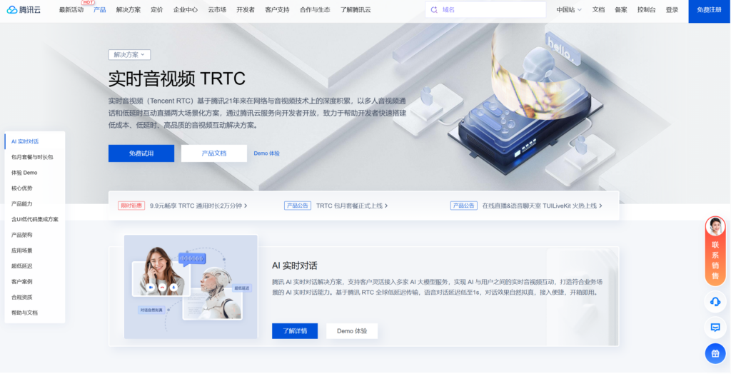 该产品支持 Web、Android、iOS、Flutter、小程序等多终端集成,并具备强大的弱网对抗、音频降噪、智能美颜、AI 语音识别等增强功能。通过阿里云全球部署的网络节点,RTC 服务可实现低延时、全球覆盖的通信体验。同时,阿里云 RTC 提供详尽的 API 文档、监控平台、质量评估工具,并支持与阿里云视频点播、内容审核、对象存储等产品打通,帮助企业快速构建端到端的音视频应用解决方案,特别适合对扩展性和平台化有较高要求的企业客户。