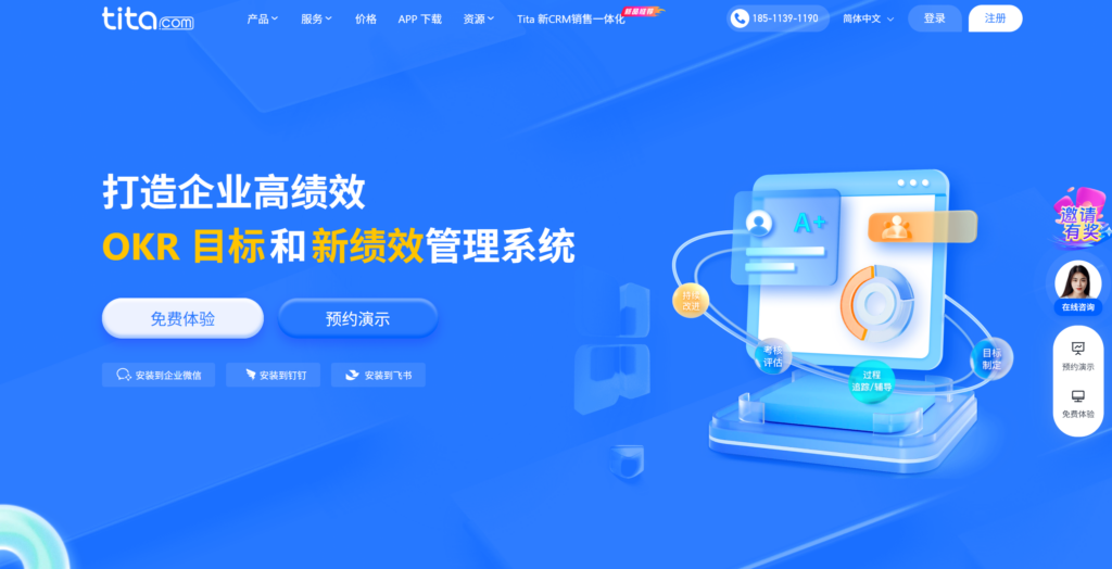 Tita 绩效宝是一款专注于目标绩效管理的国产SaaS平台,致力于为企业提供以 OKR(目标与关键成果)为核心的绩效考核解决方案。该系统强调“目标对齐+过程管理”,帮助组织实现从战略落地到个体执行的全过程闭环,适用于中小型企业逐步推进绩效数字化的场景。