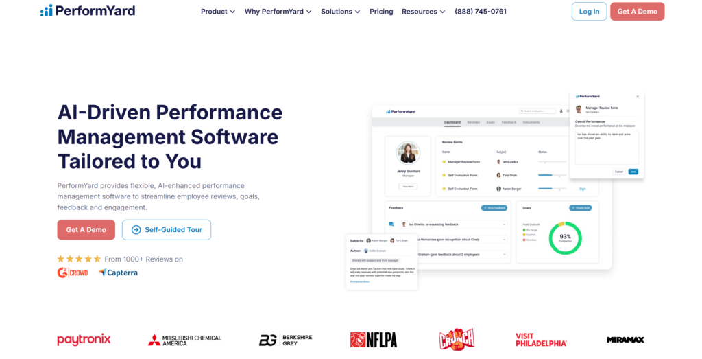 PerformYard 是一款专注于绩效管理流程自动化与定制化的企业级软件平台,广泛应用于中型至大型企业。该系统支持多种考核方式,包括年度评估、季度回顾、360度反馈、目标管理(OKRs/MBO)等,帮助企业根据自身管理模式灵活配置绩效流程与评估周期。