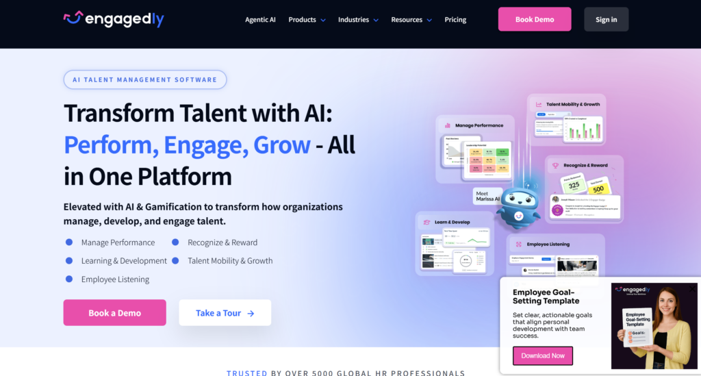 在功能结构上,Engagedly 结合了员工敬业度调查、学习管理系统(LMS)与绩效流程自动化工具,帮助企业构建“绩效+成长”一体化管理框架。其界面直观,支持多语言,并可与 Slack、MS Teams、ADP 等多种系统集成,适合全球多地协作团队使用。