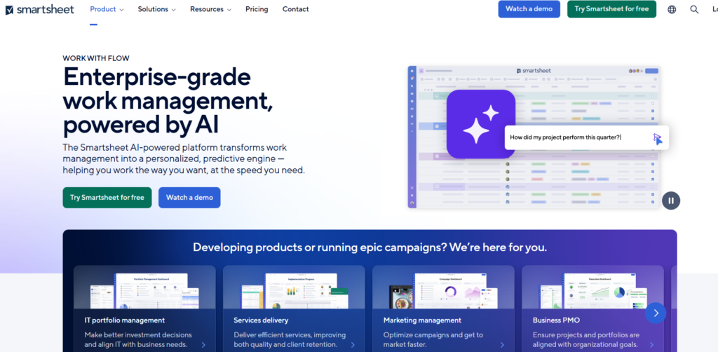 在支持多项目并行管理方面,Smartsheet 提供了项目集管理(Portfolio Management)功能,结合自动化工作流、提醒机制、审批流和动态报告,可帮助团队实现跨项目的资源协调和优先级管理。其控制中心(Control Center)还能用于批量创建项目模板,集中监控多个项目的状态变化,适合大型组织实现标准化管理。平台还集成了 Microsoft 365、Google Workspace、Salesforce 等工具,增强跨平台数据流通和协作效率。