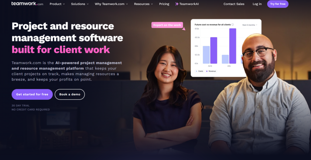 产品简介:Teamwork是一款功能全面的在线项目管理平台,尤其擅长处理面向客户的项目,并集成了时间跟踪、计费和客户支持等功能。