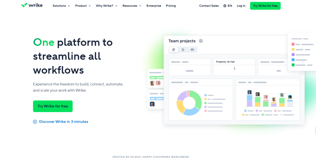 产品简介: Wrike 是一款面向中大型企业和快速增长型公司的在线项目管理软件,以其强大的项目组合管理、协作和自动化功能而著称。
