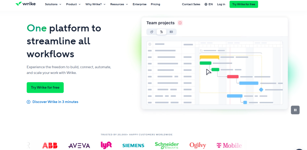 产品简介:Wrike 是一款功能全面且高度可配置的在线项目管理软件,为中大型企业提供强大的工作流管理与自动化能力。它也为对数据安全有极高要求的客户提供私有部署(On-Premise)或私有云选项。
