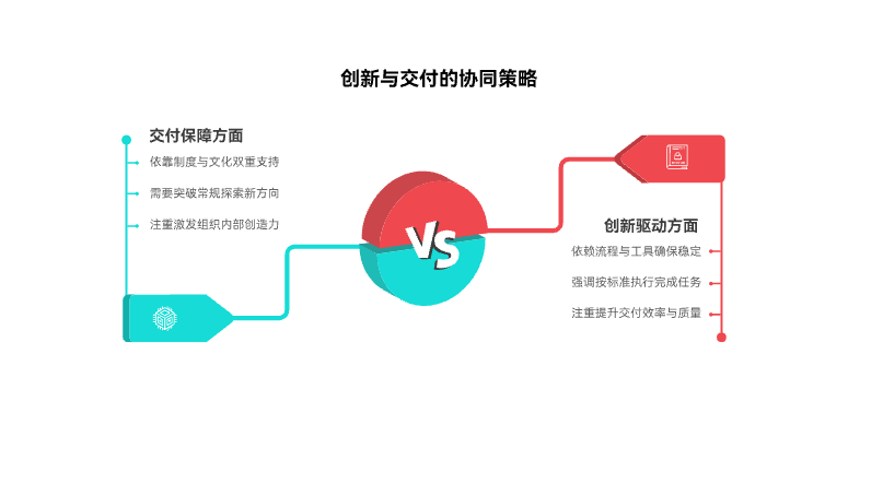 最后,两者所依赖的组织文化也不同。创新需要容错与自由,而交付依赖纪律与规范。若缺乏系统性的平衡设计,文化冲突会成为创新受阻与交付低效的根源。因此,企业必须构建动态协调机制,让创新与交付在统一框架中共存。