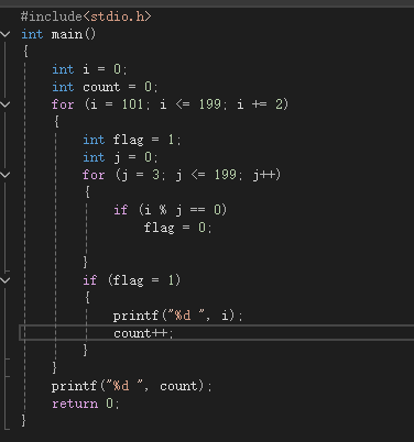 打印100~200的素数,及计算其个数(j<=sqrt(i)更简便)