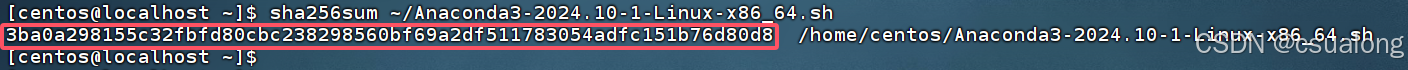 shasum -a 256 ~/Anaconda3-2024.10-1-Linux-x86_64.sh