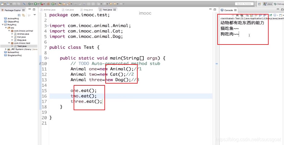 (1)同一个父类的引用,如果指向不同的子类实例对象,就会调用不同子类中重写的方法。从而产生多态的效果。(20200914)