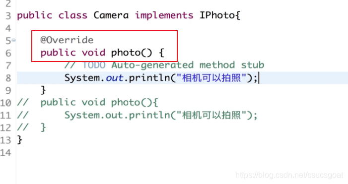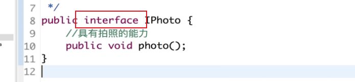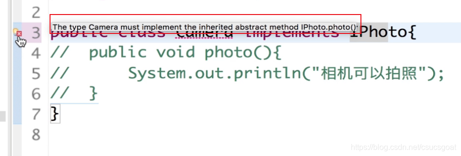 一个类实现一个接口使用:implements关键字;如下定义的Camera相机类