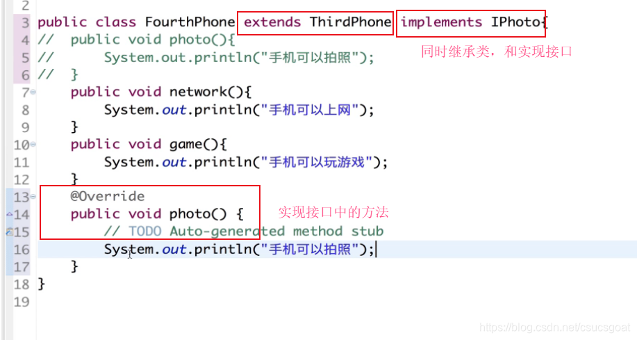 一个类可以同时继承一个类,和实现接口。如下定义的FourthPhone手机类