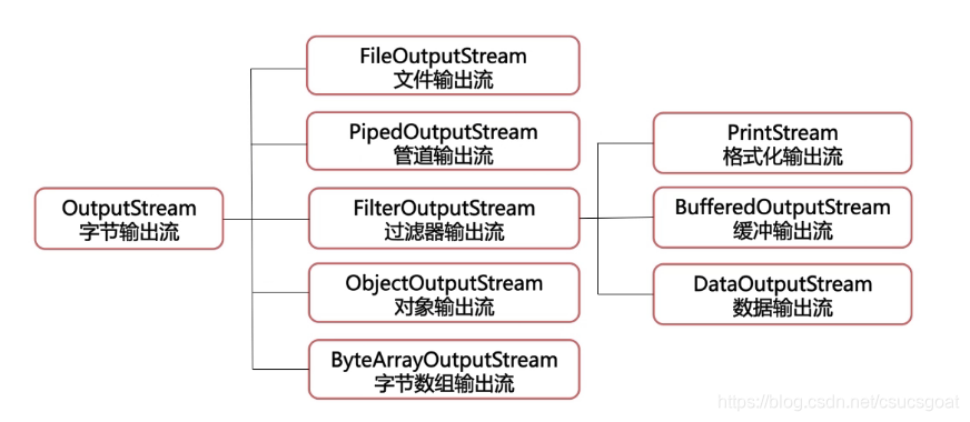 ●字节输出流的父类是:OutputStream类,其包括多个子类。