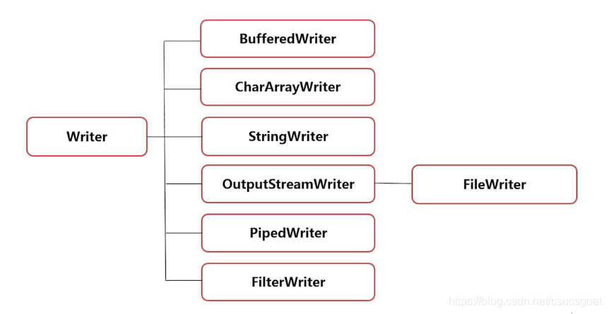 其中需要着重了解的有:BufferedWriter(缓冲字符输出流),OutputStreamWriter(字节流和字符流的转换流);FileWriter(文件输出流);