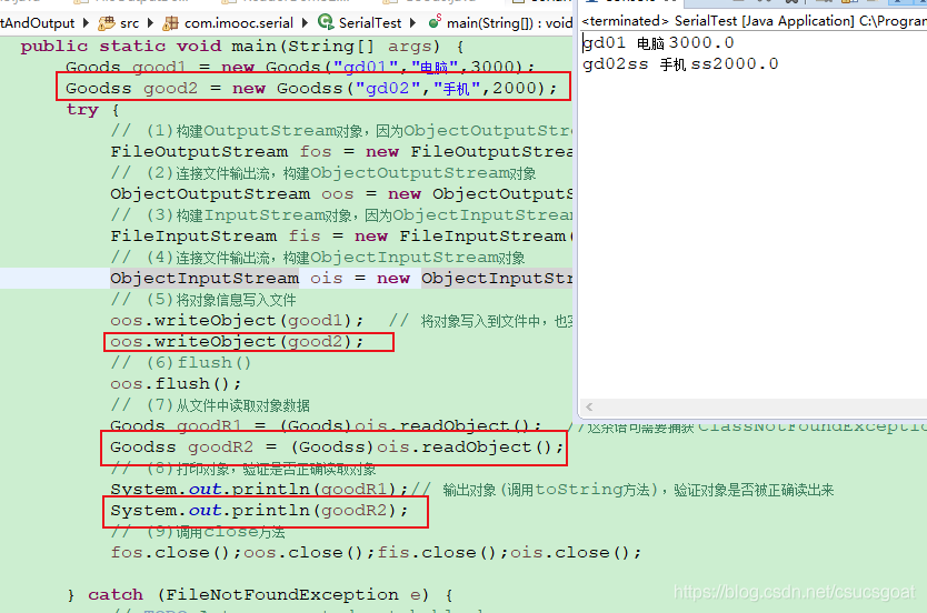 System.out.println(good);// 输出对象(调用toString方法),验证对象是否被正确读出来
